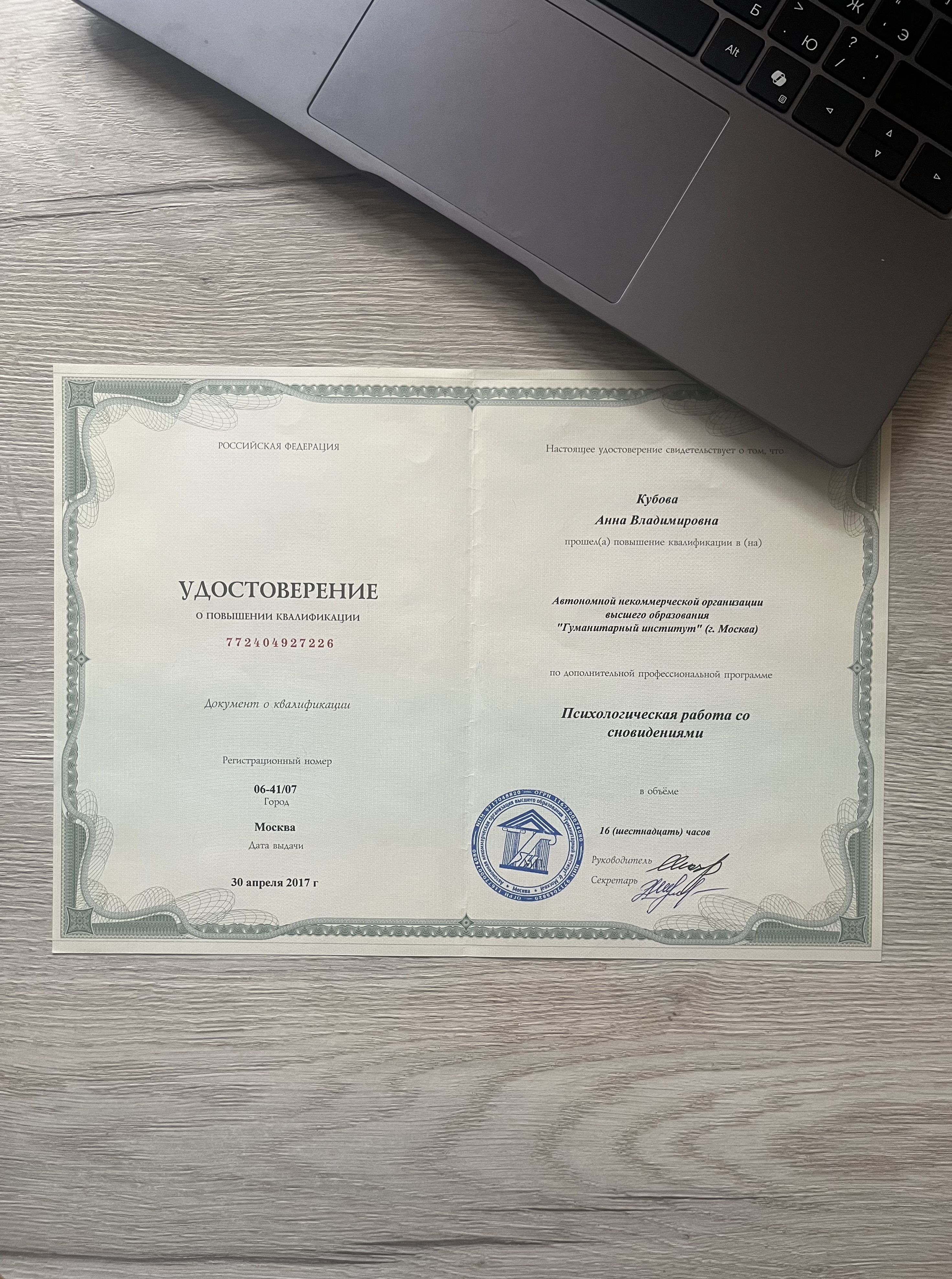 Открыть диплом Повышение квалификации