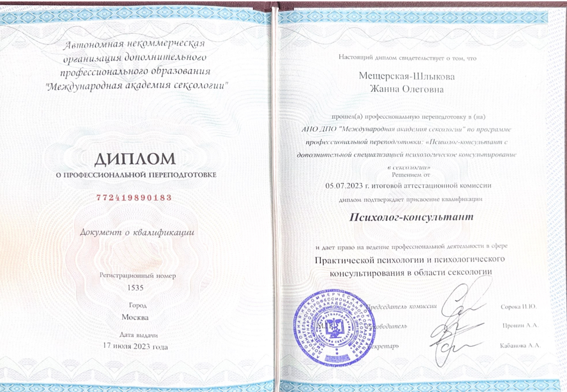"Психолог-консультант с дополнительной специализацией психологическое консультирование в сексологии"